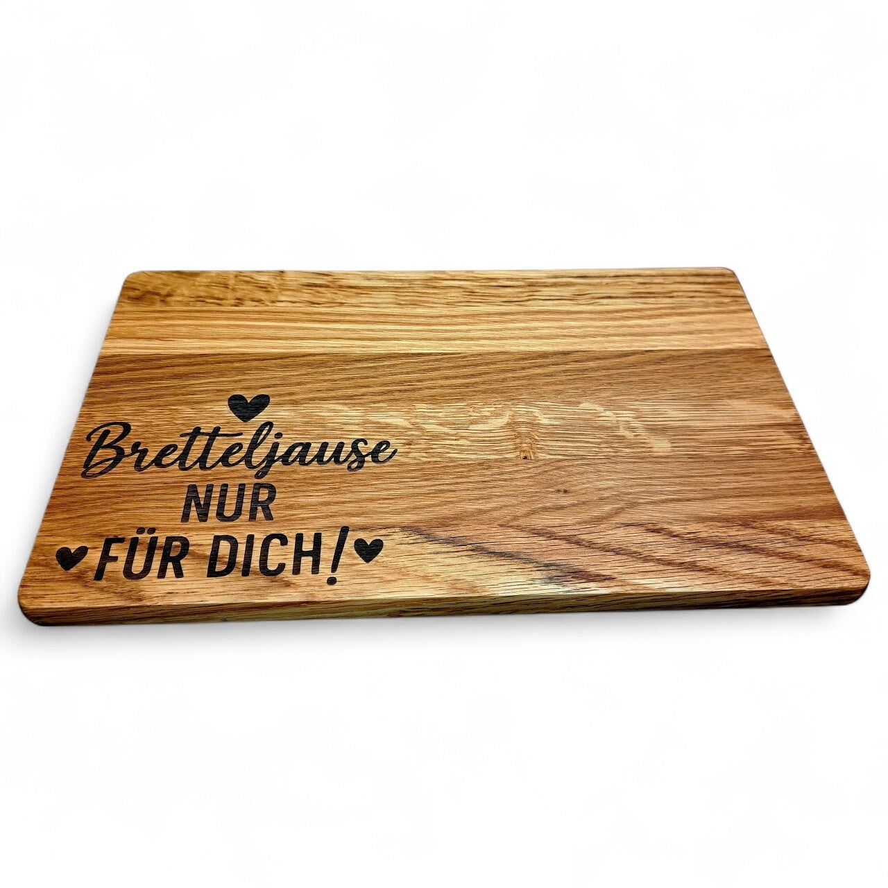 Stell dir vor, du hast ein Küchenbrett, das mehr ist als nur ein Stück Holz. Ein Brett, das deine ganz persönliche G'schicht erzählt. Genau das bekommst du mit unserem Schneidebrett aus Eiche geölt – 30 x 18 x 1,5 cm mit deiner Gravur. Und das Beste daran? Die persönliche Gravur von deinem Wunschtext oder sogar einem eigenen Bild ist bei uns immer gratis mit dabei! Wir machen es dir so einfach wie möglich: Du gibst deinen Text direkt im Bestellformular ein oder lädst eine Grafik hoch – den Rest erledigen wir für dich in unserer kleinen Manufaktur im Herzen Österreichs.